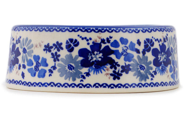 This Periwinkle Sweetness 7" Pet Bowl was handmade and hand decorated in Boleslawiec, Poland by skilled artisans according to old traditional methods. This is a Polish pottery Signature Unikat, which means that it has been hand painted with both sponges and brushes and it is signed by the artist who painted it. Unikat pieces are the most intricate works of art. Larger Unikat items take hours of very careful work to finish. This Polish stoneware is microwave, dishwasher, freezer, and oven safe up to 480°F. It does not contain lead or cadmium. It is part of the Periwinkle Sweetness Collection.