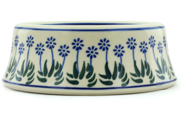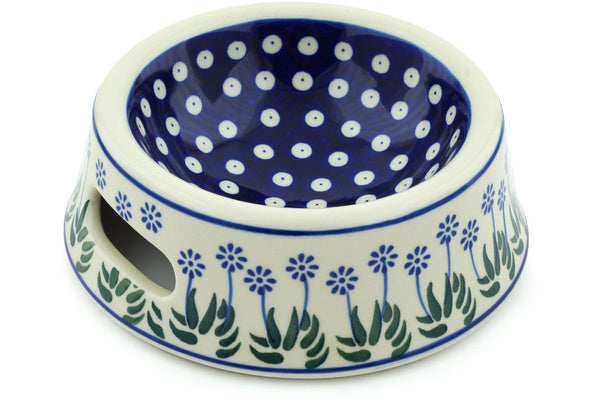 This Springing Calendulas 7" Pet Bowl was handmade and hand decorated in Boleslawiec, Poland by skilled artisans according to old traditional methods. This Polish stoneware is microwave, dishwasher, freezer, and oven safe up to 480°F. It does not contain lead or cadmium. It is part of the Springing Calendulas Collection.