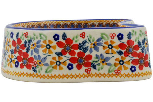 This Summer Bouquet 7" Pet Bowl was handmade and hand decorated in Boleslawiec, Poland by skilled artisans according to old traditional methods. This is a Polish pottery Signature Unikat, which means that it has been hand painted with both sponges and brushes and it is signed by the artist who painted it. Unikat pieces are the most intricate works of art. Larger Unikat items take hours of very careful work to finish. This Polish stoneware is microwave, dishwasher, freezer, and oven safe up to 480°F. It does not contain lead or cadmium. It is part of the Summer Bouquet Collection.