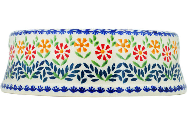 This Wave Of Flowers 8" Pet Bowl was handmade and hand decorated in Boleslawiec, Poland by skilled artisans according to old traditional methods. This Polish stoneware is microwave, dishwasher, freezer, and oven safe up to 480°F. It does not contain lead or cadmium. It is part of the Wave Of Flowers Collection.