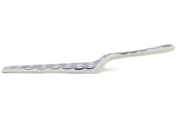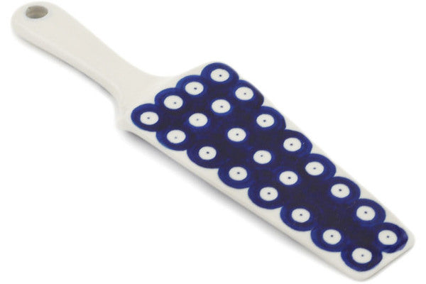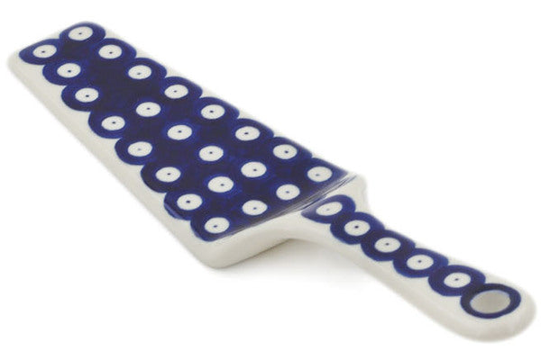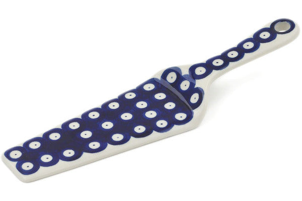 This Blue Eyes 10" Pie and Cake Server was handmade and hand decorated in Boleslawiec, Poland by skilled artisans according to old traditional methods. This Polish stoneware is microwave, dishwasher, freezer, and oven safe up to 480°F. It does not contain lead or cadmium. It is part of the Blue Eyes Collection.