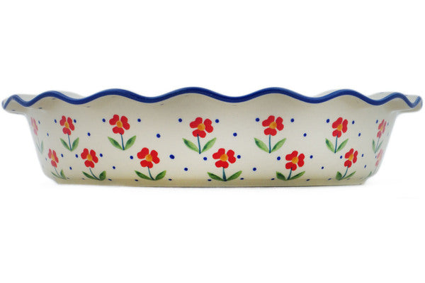 This Red Primrose 11" Pie Dish was handmade and hand decorated in Boleslawiec, Poland by skilled artisans according to old traditional methods. This Polish stoneware is microwave, dishwasher, freezer, and oven safe up to 480°F. It does not contain lead or cadmium. It is part of the Red Primrose Collection.