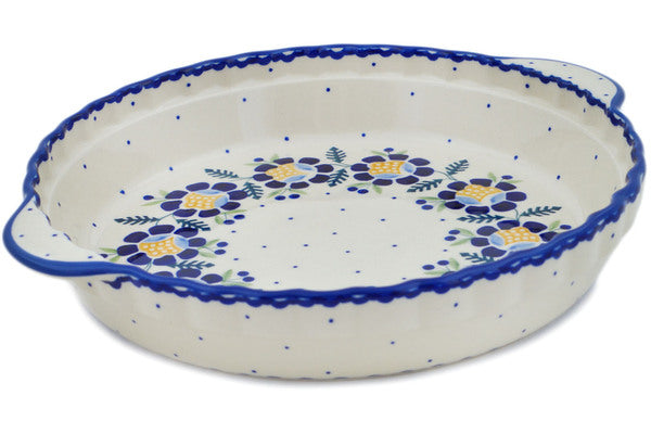 Pie Dish Fluted with Handles 11" Orange And Blue Flower Theme