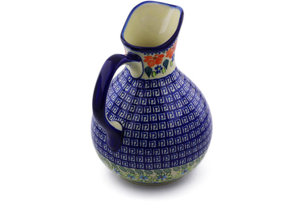 This Grecian Fields 10 Cup Pitcher was handmade and hand decorated in Boleslawiec, Poland by skilled artisans according to old traditional methods. This Polish stoneware is microwave, dishwasher, freezer, and oven safe up to 480°F. It does not contain lead or cadmium. It is part of the Grecian Fields Collection.