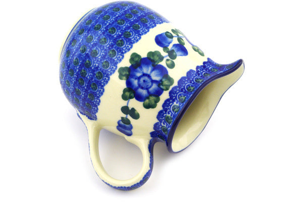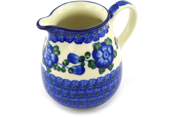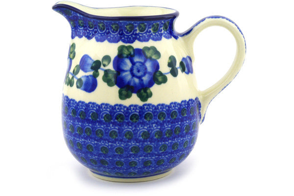 This Blue Poppies 12 oz Pitcher was handmade and hand decorated in Boleslawiec, Poland by skilled artisans according to old traditional methods. This Polish stoneware is microwave, dishwasher, freezer, and oven safe up to 480°F. It does not contain lead or cadmium. It is part of the Blue Poppies Collection.