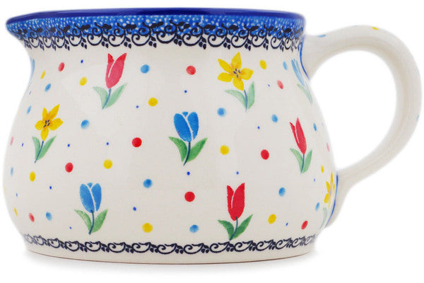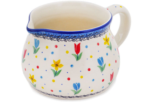 This Full Bloom 34 oz Pitcher was handmade and hand decorated in Boleslawiec, Poland by skilled artisans according to old traditional methods. This is a Polish pottery Signature Unikat, which means that it has been hand painted with both sponges and brushes and it is signed by the artist who painted it. Unikat pieces are the most intricate works of art. Larger Unikat items take hours of very careful work to finish. This Polish stoneware is microwave, dishwasher, freezer, and oven safe up to 480°F. It does not contain lead or cadmium. It is part of the Full Bloom Collection.