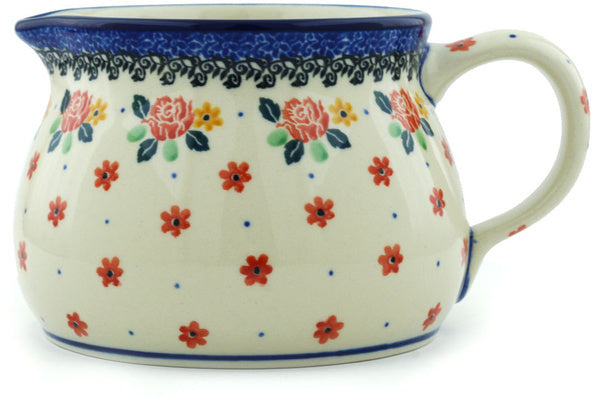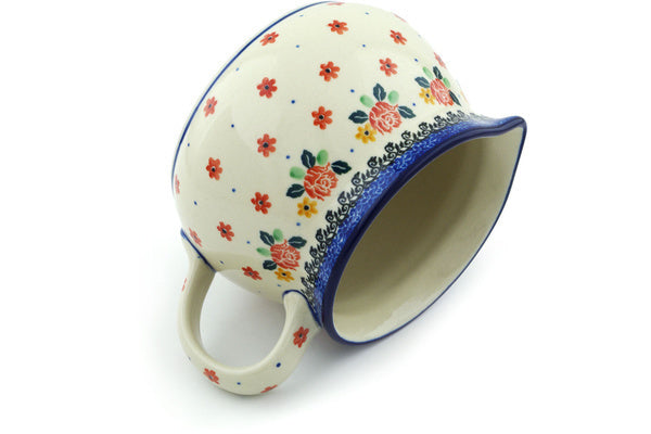 This Garden Party 34 oz Pitcher was handmade and hand decorated in Boleslawiec, Poland by skilled artisans according to old traditional methods. This Polish stoneware is microwave, dishwasher, freezer, and oven safe up to 480°F. It does not contain lead or cadmium. It is part of the Garden Party Collection.
