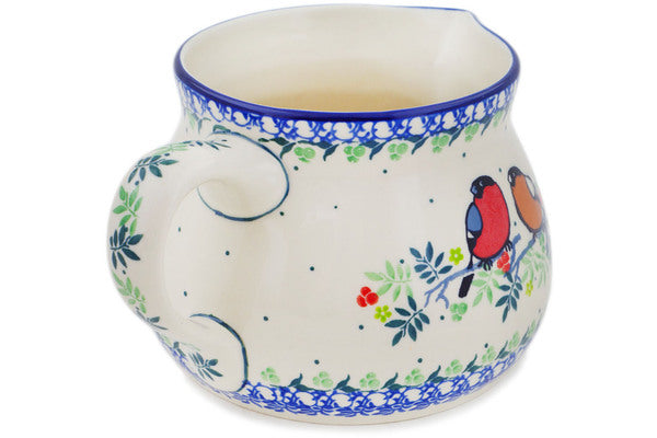 This Robin & Wren 50 oz Pitcher was handmade and hand decorated in Boleslawiec, Poland by skilled artisans according to old traditional methods. This is a Polish pottery Signature Unikat, which means that it has been hand painted with both sponges and brushes and it is signed by the artist who painted it. Unikat pieces are the most intricate works of art. Larger Unikat items take hours of very careful work to finish. This Polish stoneware is microwave, dishwasher, freezer, and oven safe up to 480°F. It does not contain lead or cadmium. It is part of the Robin & Wren Collection.