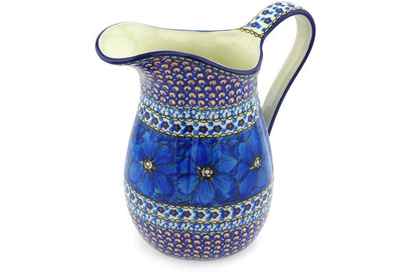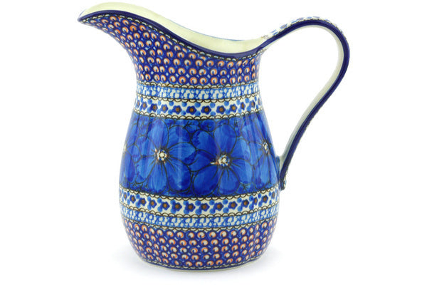 This Cobalt Poppies 6 Cup Pitcher was handmade and hand decorated in Boleslawiec, Poland by skilled artisans according to old traditional methods. This is a Polish pottery Signature Unikat, which means that it has been hand painted with both sponges and brushes and it is signed by the artist who painted it. Unikat pieces are the most intricate works of art. Larger Unikat items take hours of very careful work to finish. This Polish stoneware is microwave, dishwasher, freezer, and oven safe up to 480°F. It does not contain lead or cadmium. It is part of the Cobalt Poppies Collection.