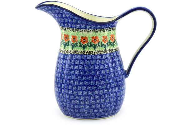 This Maraschino 6 Cup Pitcher was handmade and hand decorated in Boleslawiec, Poland by skilled artisans according to old traditional methods. This Polish stoneware is microwave, dishwasher, freezer, and oven safe up to 480°F. It does not contain lead or cadmium. It is part of the Maraschino Collection.
