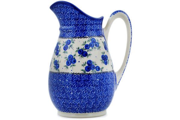 This Lovely Blueberries 6 cups Pitcher was handmade and hand decorated in Boleslawiec, Poland by skilled artisans according to old traditional methods. This Polish stoneware is microwave, dishwasher, freezer, and oven safe up to 480°F. It does not contain lead or cadmium. It is part of the Lovely Blueberries Collection.