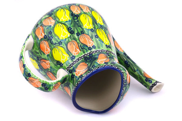 This Easter Rose 71 oz Watering Can was handmade and hand decorated in Boleslawiec, Poland by skilled artisans according to old traditional methods. This is a Polish pottery Signature Unikat, which means that it has been hand painted with both sponges and brushes and it is signed by the artist who painted it. Unikat pieces are the most intricate works of art. Larger Unikat items take hours of very careful work to finish. This Polish stoneware is microwave, dishwasher, freezer, and oven safe up to 480°F. It does not contain lead or cadmium. It is part of the Easter Rose Collection.