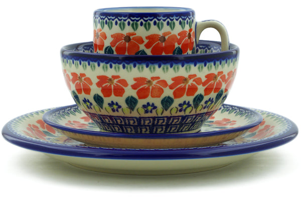This Grecian Fields Place Setting was handmade and hand decorated in Boleslawiec, Poland by skilled artisans according to old traditional methods. This Polish stoneware is microwave, dishwasher, freezer, and oven safe up to 480°F. It does not contain lead or cadmium. It is part of the Grecian Fields Collection.