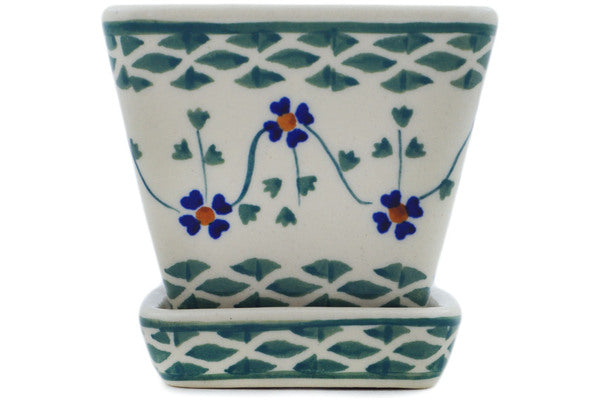 This Lucky Blue Clover 3" Planter was handmade and hand decorated in Boleslawiec, Poland by skilled artisans according to old traditional methods. This Polish stoneware is microwave, dishwasher, freezer, and oven safe up to 480°F. It does not contain lead or cadmium. It is part of the Lucky Blue Clover Collection.