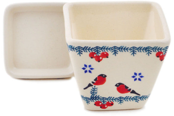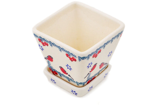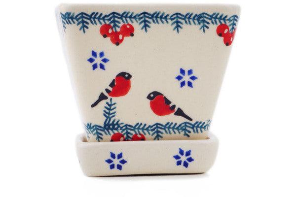 This Winter Bullfinch 3" Planter was handmade and hand decorated in Boleslawiec, Poland by skilled artisans according to old traditional methods. This Polish stoneware is microwave, dishwasher, freezer, and oven safe up to 480°F. It does not contain lead or cadmium. It is part of the Winter Bullfinch Collection.