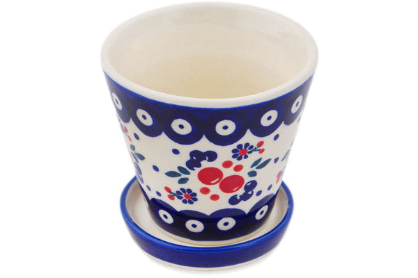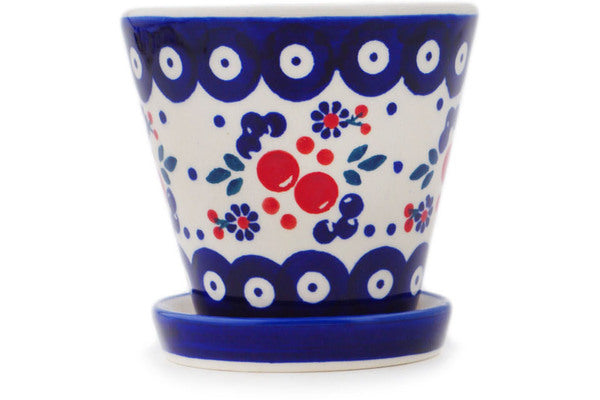 This Burst Of Berries 4" Planter was handmade and hand decorated in Boleslawiec, Poland by skilled artisans according to old traditional methods. This Polish stoneware is microwave, dishwasher, freezer, and oven safe up to 480°F. It does not contain lead or cadmium. It is part of the Burst Of Berries Collection.