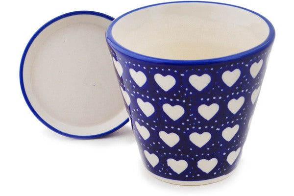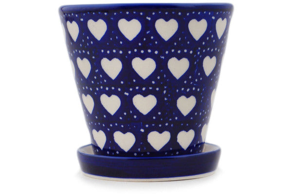 This Heart's Full Of Love 4" Planter was handmade and hand decorated in Boleslawiec, Poland by skilled artisans according to old traditional methods. This Polish stoneware is microwave, dishwasher, freezer, and oven safe up to 480°F. It does not contain lead or cadmium. It is part of the Heart's Full Of Love Collection.