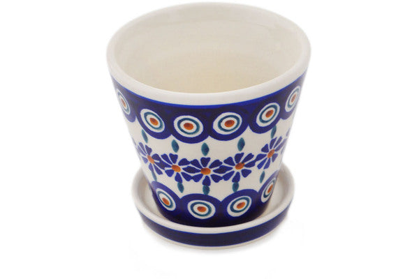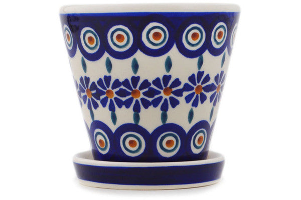 This Peacock 4" Planter was handmade and hand decorated in Boleslawiec, Poland by skilled artisans according to old traditional methods. This Polish stoneware is microwave, dishwasher, freezer, and oven safe up to 480°F. It does not contain lead or cadmium. It is part of the Peacock Collection.