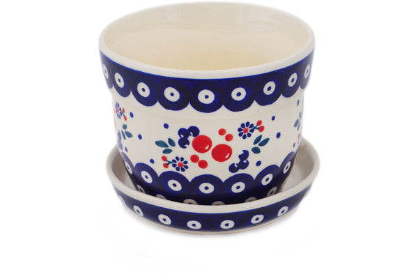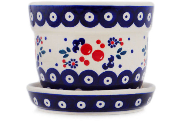 This Burst Of Berries 5" Planter was handmade and hand decorated in Boleslawiec, Poland by skilled artisans according to old traditional methods. This Polish stoneware is microwave, dishwasher, freezer, and oven safe up to 480°F. It does not contain lead or cadmium. It is part of the Burst Of Berries Collection.