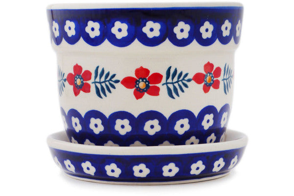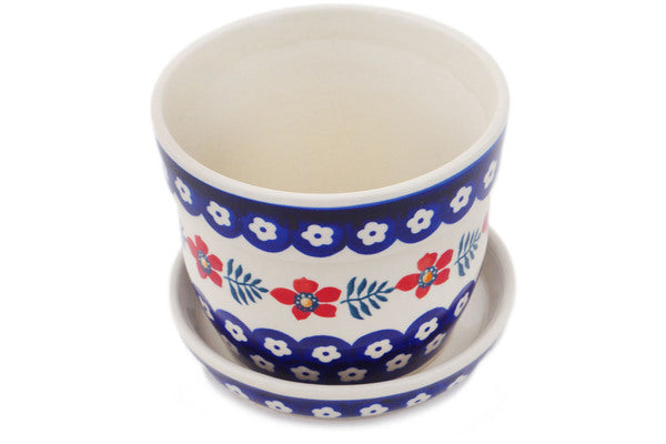 This Poppies And Ferns 5" Planter was handmade and hand decorated in Boleslawiec, Poland by skilled artisans according to old traditional methods. This Polish stoneware is microwave, dishwasher, freezer, and oven safe up to 480°F. It does not contain lead or cadmium. It is part of the Poppies And Ferns Collection.