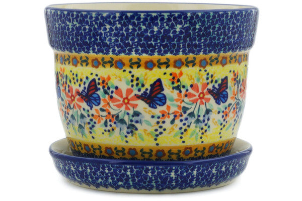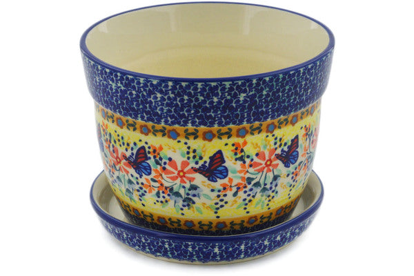 This Butterfly Summer Garden 6" Planter was handmade and hand decorated in Boleslawiec, Poland by skilled artisans according to old traditional methods. This is a Polish pottery Signature Unikat, which means that it has been hand painted with both sponges and brushes and it is signed by the artist who painted it. Unikat pieces are the most intricate works of art. Larger Unikat items take hours of very careful work to finish. This Polish stoneware is microwave, dishwasher, freezer, and oven safe up to 480°F. It does not contain lead or cadmium. It is part of the Butterfly Summer Garden Collection.
