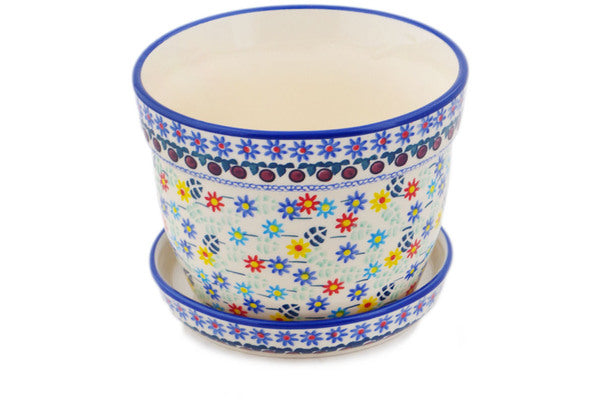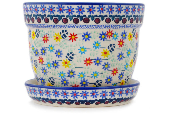This Primary Spring 6" Planter was handmade and hand decorated in Boleslawiec, Poland by skilled artisans according to old traditional methods. This is a Polish pottery Signature Unikat, which means that it has been hand painted with both sponges and brushes and it is signed by the artist who painted it. Unikat pieces are the most intricate works of art. Larger Unikat items take hours of very careful work to finish. This Polish stoneware is microwave, dishwasher, freezer, and oven safe up to 480°F. It does not contain lead or cadmium. It is part of the Primary Spring Collection.