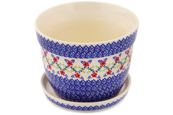 This Rings Of Happiness 7" Planter was handmade and hand decorated in Boleslawiec, Poland by skilled artisans according to old traditional methods. This Polish stoneware is microwave, dishwasher, freezer, and oven safe up to 480°F. It does not contain lead or cadmium. It is part of the Rings Of Happiness Collection.