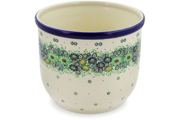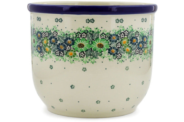 This Green Wreath 8" Planter was handmade and hand decorated in Boleslawiec, Poland by skilled artisans according to old traditional methods. This is a Polish pottery Signature Unikat, which means that it has been hand painted with both sponges and brushes and it is signed by the artist who painted it. Unikat pieces are the most intricate works of art. Larger Unikat items take hours of very careful work to finish. This Polish stoneware is microwave, dishwasher, freezer, and oven safe up to 480°F. It does not contain lead or cadmium. It is part of the Green Wreath Collection.
