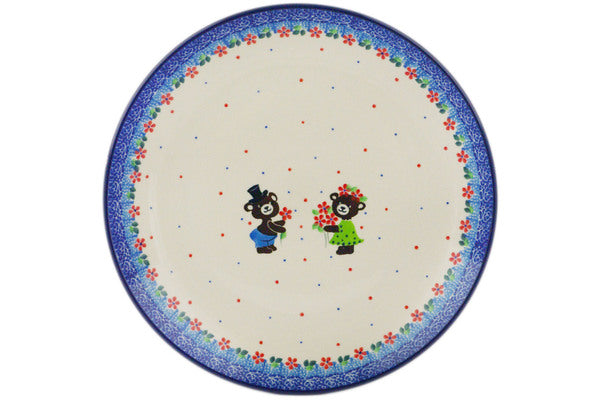 This Beary Sweet 10" Plate was handmade and hand decorated in Boleslawiec, Poland by skilled artisans according to old traditional methods. This is a Polish pottery Signature Unikat, which means that it has been hand painted with both sponges and brushes and it is signed by the artist who painted it. Unikat pieces are the most intricate works of art. Larger Unikat items take hours of very careful work to finish. This Polish stoneware is microwave, dishwasher, freezer, and oven safe up to 480°F. It does not contain lead or cadmium. It is part of the Beary Sweet Collection.