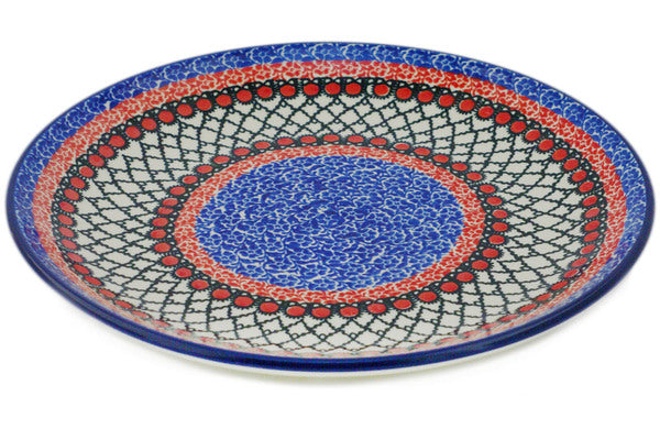 This Crimson Circles 10" Plate was handmade and hand decorated in Boleslawiec, Poland by skilled artisans according to old traditional methods. This is a Polish pottery Signature Unikat, which means that it has been hand painted with both sponges and brushes and it is signed by the artist who painted it. Unikat pieces are the most intricate works of art. Larger Unikat items take hours of very careful work to finish. This Polish stoneware is microwave, dishwasher, freezer, and oven safe up to 480°F. It does not contain lead or cadmium. It is part of the Crimson Circles Collection.
