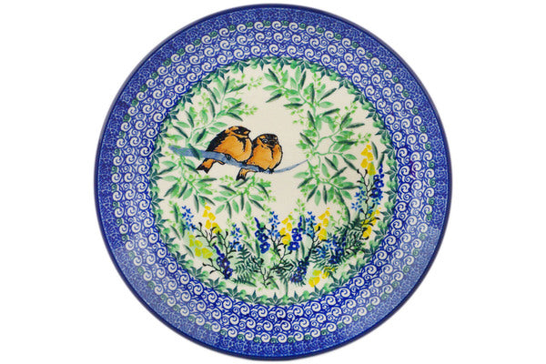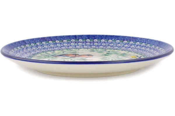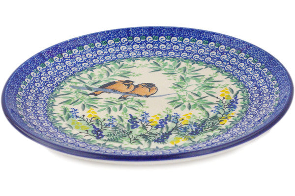 This Feathered Friends 10" Plate was handmade and hand decorated in Boleslawiec, Poland by skilled artisans according to old traditional methods. This is a Polish pottery Signature Unikat, which means that it has been hand painted with both sponges and brushes and it is signed by the artist who painted it. Unikat pieces are the most intricate works of art. Larger Unikat items take hours of very careful work to finish. This Polish stoneware is microwave, dishwasher, freezer, and oven safe up to 480°F. It does not contain lead or cadmium. It is part of the Feathered Friends Collection.