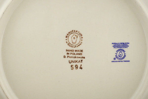 This Misty Blue 10" Plate was handmade and hand decorated in Boleslawiec, Poland by skilled artisans according to old traditional methods. This is a Polish pottery Signature Unikat, which means that it has been hand painted with both sponges and brushes and it is signed by the artist who painted it. Unikat pieces are the most intricate works of art. Larger Unikat items take hours of very careful work to finish. This Polish stoneware is microwave, dishwasher, freezer, and oven safe up to 480°F. It does not contain lead or cadmium. It is part of the Misty Blue Collection.