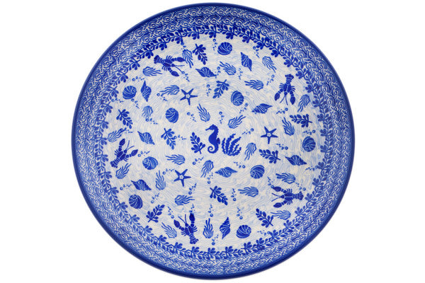 This Ocean Medley 10" Plate was handmade and hand decorated in Boleslawiec, Poland by skilled artisans according to old traditional methods. This is a Polish pottery Signature Unikat, which means that it has been hand painted with both sponges and brushes and it is signed by the artist who painted it. Unikat pieces are the most intricate works of art. Larger Unikat items take hours of very careful work to finish. This Polish stoneware is microwave, dishwasher, freezer, and oven safe up to 480°F. It does not contain lead or cadmium. It is part of the Ocean Medley Collection.
