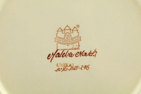 This Garden Meadow 11" Plate was handmade and hand decorated in Boleslawiec, Poland by skilled artisans according to old traditional methods. This is a Polish pottery Signature Unikat, which means that it has been hand painted with both sponges and brushes and it is signed by the artist who painted it. Unikat pieces are the most intricate works of art. Larger Unikat items take hours of very careful work to finish. This Polish stoneware is microwave, dishwasher, freezer, and oven safe up to 480°F. It does not contain lead or cadmium. It is part of the Garden Meadow Collection.