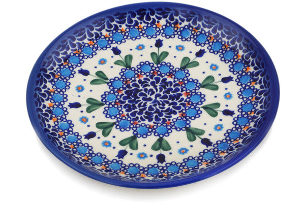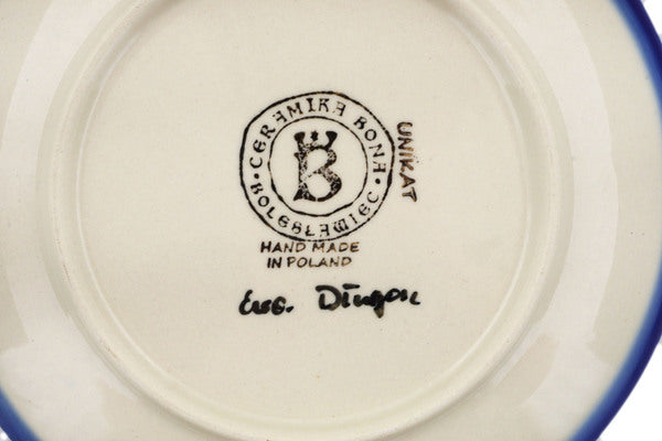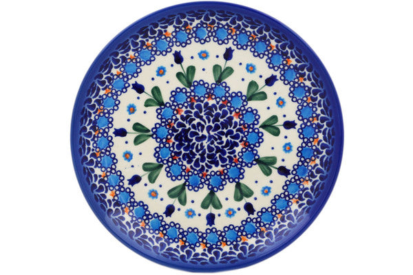 This Blue Tulip Garden 7" Plate was handmade and hand decorated in Boleslawiec, Poland by skilled artisans according to old traditional methods. This is a Polish pottery Signature Unikat, which means that it has been hand painted with both sponges and brushes and it is signed by the artist who painted it. Unikat pieces are the most intricate works of art. Larger Unikat items take hours of very careful work to finish. This Polish stoneware is microwave, dishwasher, freezer, and oven safe up to 480°F. It does not contain lead or cadmium. It is part of the Blue Tulip Garden Collection.