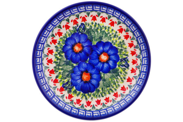 This Brilliant Butterfly Popp 7" Plate was handmade and hand decorated in Boleslawiec, Poland by skilled artisans according to old traditional methods. This is a Polish pottery Signature Unikat, which means that it has been hand painted with both sponges and brushes and it is signed by the artist who painted it. Unikat pieces are the most intricate works of art. Larger Unikat items take hours of very careful work to finish. This Polish stoneware is microwave, dishwasher, freezer, and oven safe up to 480°F. It does not contain lead or cadmium. It is part of the Brilliant Butterfly Popp Collection.