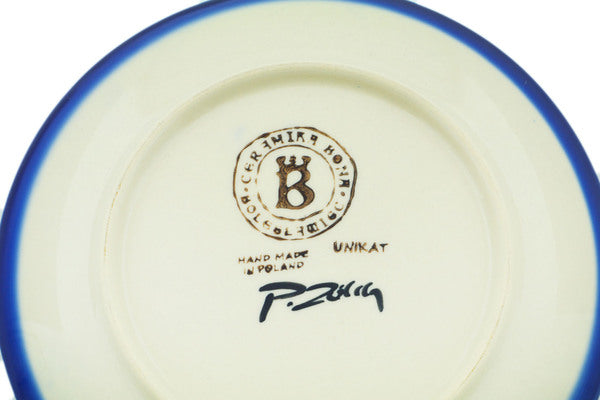 This Field Of Blue 7" Plate was handmade and hand decorated in Boleslawiec, Poland by skilled artisans according to old traditional methods. This is a Polish pottery Signature Unikat, which means that it has been hand painted with both sponges and brushes and it is signed by the artist who painted it. Unikat pieces are the most intricate works of art. Larger Unikat items take hours of very careful work to finish. This Polish stoneware is microwave, dishwasher, freezer, and oven safe up to 480°F. It does not contain lead or cadmium. It is part of the Field Of Blue Collection.