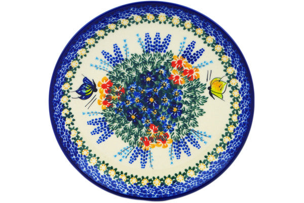 This Flutters In The Wind 7" Plate was handmade and hand decorated in Boleslawiec, Poland by skilled artisans according to old traditional methods. This is a Polish pottery Signature Unikat, which means that it has been hand painted with both sponges and brushes and it is signed by the artist who painted it. Unikat pieces are the most intricate works of art. Larger Unikat items take hours of very careful work to finish. This Polish stoneware is microwave, dishwasher, freezer, and oven safe up to 480°F. It does not contain lead or cadmium. It is part of the Flutters In The Wind Collection.