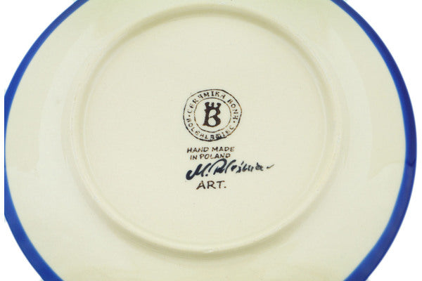 This Himalayan Blue Poppy 7" Plate was handmade and hand decorated in Boleslawiec, Poland by skilled artisans according to old traditional methods. This is a Polish pottery Signature Unikat, which means that it has been hand painted with both sponges and brushes and it is signed by the artist who painted it. Unikat pieces are the most intricate works of art. Larger Unikat items take hours of very careful work to finish. This Polish stoneware is microwave, dishwasher, freezer, and oven safe up to 480°F. It does not contain lead or cadmium. It is part of the Himalayan Blue Poppy Collection.