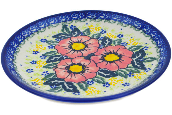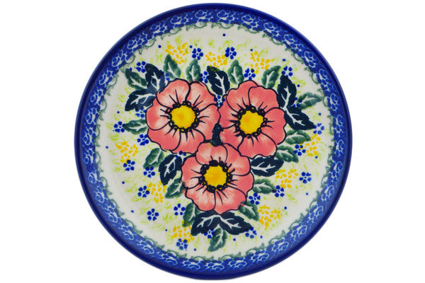 This Red Daisy Delight 7" Plate was handmade and hand decorated in Boleslawiec, Poland by skilled artisans according to old traditional methods. This is a Polish pottery Signature Unikat, which means that it has been hand painted with both sponges and brushes and it is signed by the artist who painted it. Unikat pieces are the most intricate works of art. Larger Unikat items take hours of very careful work to finish. This Polish stoneware is microwave, dishwasher, freezer, and oven safe up to 480°F. It does not contain lead or cadmium. It is part of the Red Daisy Delight Collection.