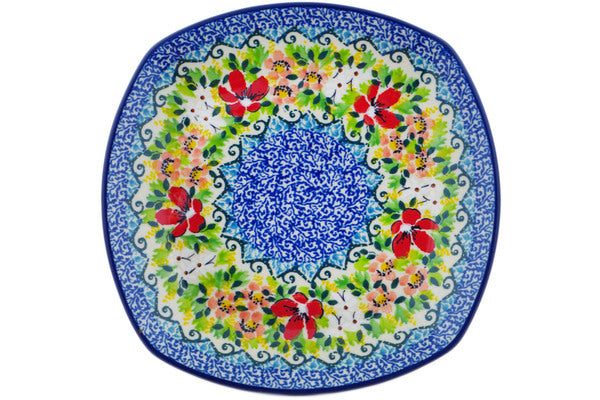 This Petal Dance 8" Plate was handmade and hand decorated in Boleslawiec, Poland by skilled artisans according to old traditional methods. This is a Polish pottery Signature Unikat, which means that it has been hand painted with both sponges and brushes and it is signed by the artist who painted it. Unikat pieces are the most intricate works of art. Larger Unikat items take hours of very careful work to finish. This Polish stoneware is microwave, dishwasher, freezer, and oven safe up to 480°F. It does not contain lead or cadmium. It is part of the Petal Dance Collection.