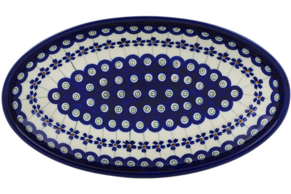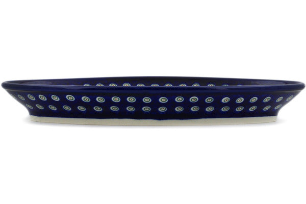 This Flowering Peacock 10" Platter was handmade and hand decorated in Boleslawiec, Poland by skilled artisans according to old traditional methods. This Polish stoneware is microwave, dishwasher, freezer, and oven safe up to 480°F. It does not contain lead or cadmium. It is part of the Flowering Peacock Collection.