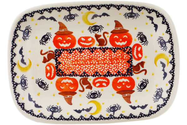 This Halloween Spooky Pumpkin 10" Platter was handmade and hand decorated in Boleslawiec, Poland by skilled artisans according to old traditional methods. This Polish stoneware is microwave, dishwasher, freezer, and oven safe up to 480°F. It does not contain lead or cadmium. It is part of the Halloween Spooky Pumpkin Collection.