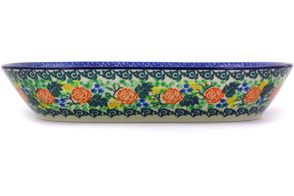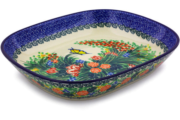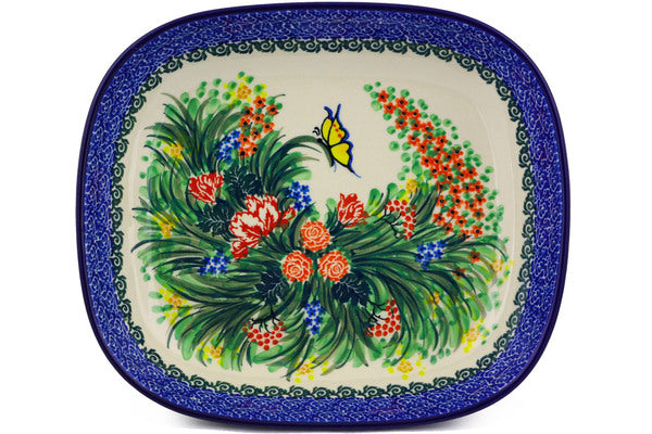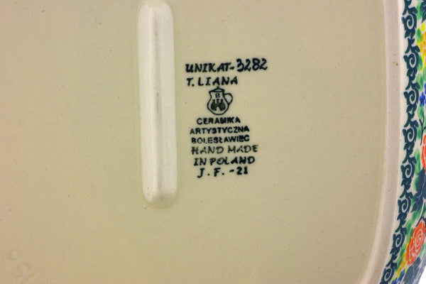 This Spring Butterfly 10" Platter was handmade and hand decorated in Boleslawiec, Poland by skilled artisans according to old traditional methods. This is a Polish pottery Signature Unikat, which means that it has been hand painted with both sponges and brushes and it is signed by the artist who painted it. Unikat pieces are the most intricate works of art. Larger Unikat items take hours of very careful work to finish. This Polish stoneware is microwave, dishwasher, freezer, and oven safe up to 480°F. It does not contain lead or cadmium. It is part of the Spring Butterfly Collection.