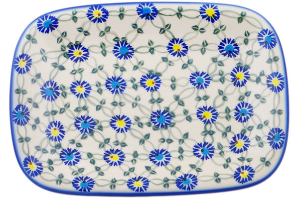 This Blue Thistle Beauty 11" Platter was handmade and hand decorated in Boleslawiec, Poland by skilled artisans according to old traditional methods. This Polish stoneware is microwave, dishwasher, freezer, and oven safe up to 480°F. It does not contain lead or cadmium. It is part of the Blue Thistle Beauty Collection.