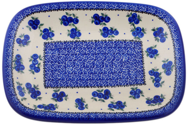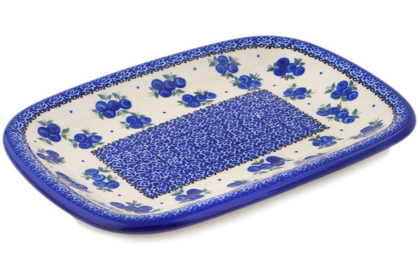 This Lovely Blueberries 11" Platter was handmade and hand decorated in Boleslawiec, Poland by skilled artisans according to old traditional methods. This Polish stoneware is microwave, dishwasher, freezer, and oven safe up to 480°F. It does not contain lead or cadmium. It is part of the Lovely Blueberries Collection.