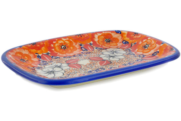 This Poppy Passion 11" Platter was handmade and hand decorated in Boleslawiec, Poland by skilled artisans according to old traditional methods. This is a Polish pottery Signature Unikat, which means that it has been hand painted with both sponges and brushes and it is signed by the artist who painted it. Unikat pieces are the most intricate works of art. Larger Unikat items take hours of very careful work to finish. This Polish stoneware is microwave, dishwasher, freezer, and oven safe up to 480°F. It does not contain lead or cadmium. It is part of the Poppy Passion Collection.