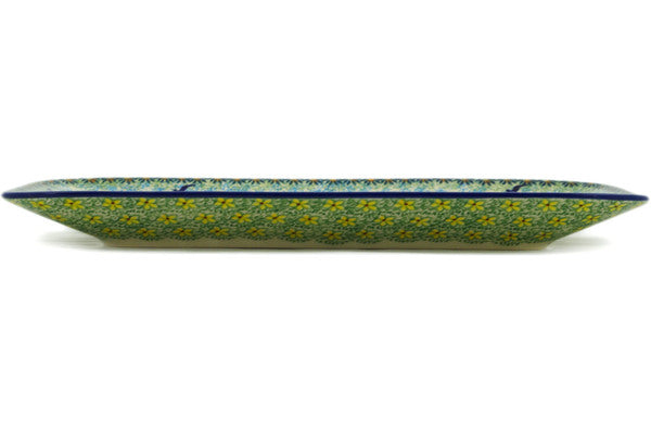 This Birds In The Sunset 14" Platter was handmade and hand decorated in Boleslawiec, Poland by skilled artisans according to old traditional methods. This is a Polish pottery Signature Unikat, which means that it has been hand painted with both sponges and brushes and it is signed by the artist who painted it. Unikat pieces are the most intricate works of art. Larger Unikat items take hours of very careful work to finish. This Polish stoneware is microwave, dishwasher, freezer, and oven safe up to 480°F. It does not contain lead or cadmium. It is part of the Birds In The Sunset Collection.