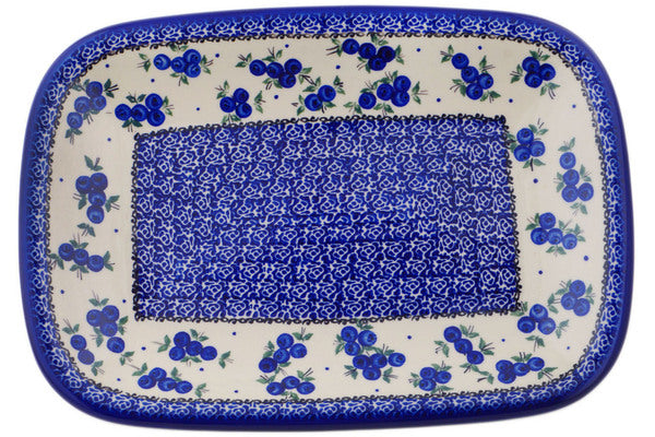 This Lovely Blueberries 14" Platter was handmade and hand decorated in Boleslawiec, Poland by skilled artisans according to old traditional methods. This Polish stoneware is microwave, dishwasher, freezer, and oven safe up to 480°F. It does not contain lead or cadmium. It is part of the Lovely Blueberries Collection.