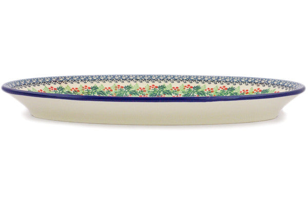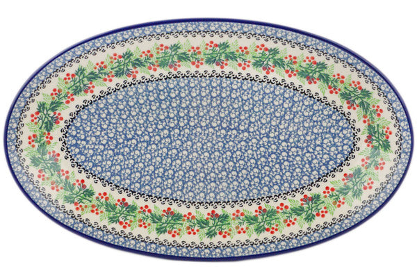 This Holly Berry Wreath 15" Platter was handmade and hand decorated in Boleslawiec, Poland by skilled artisans according to old traditional methods. This Polish stoneware is microwave, dishwasher, freezer, and oven safe up to 480°F. It does not contain lead or cadmium. It is part of the Holly Berry Wreath Collection.